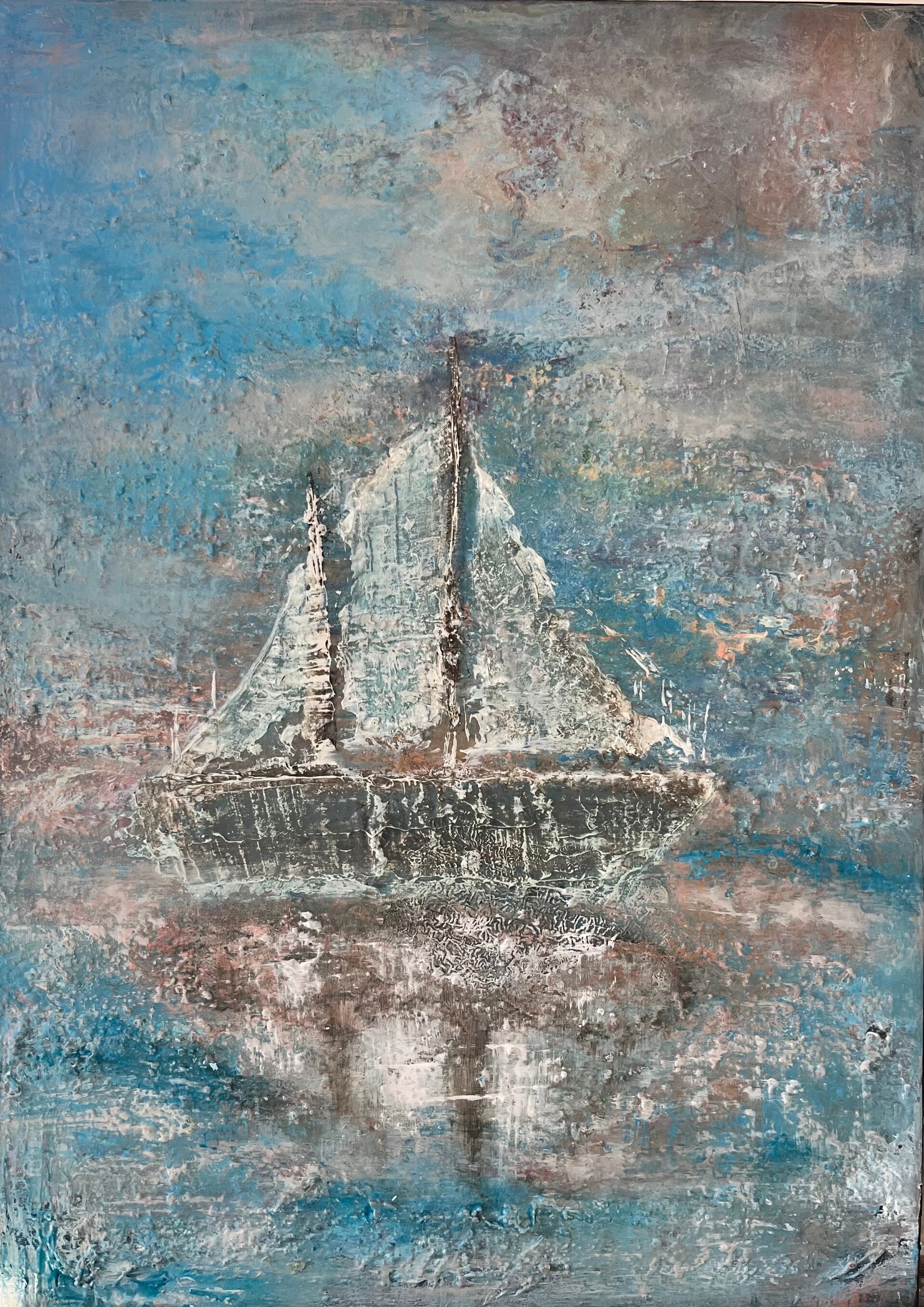 Acryl auf Leinwand 100x150 mit Struktur mit Schattenfugenrahmen Nussbaum